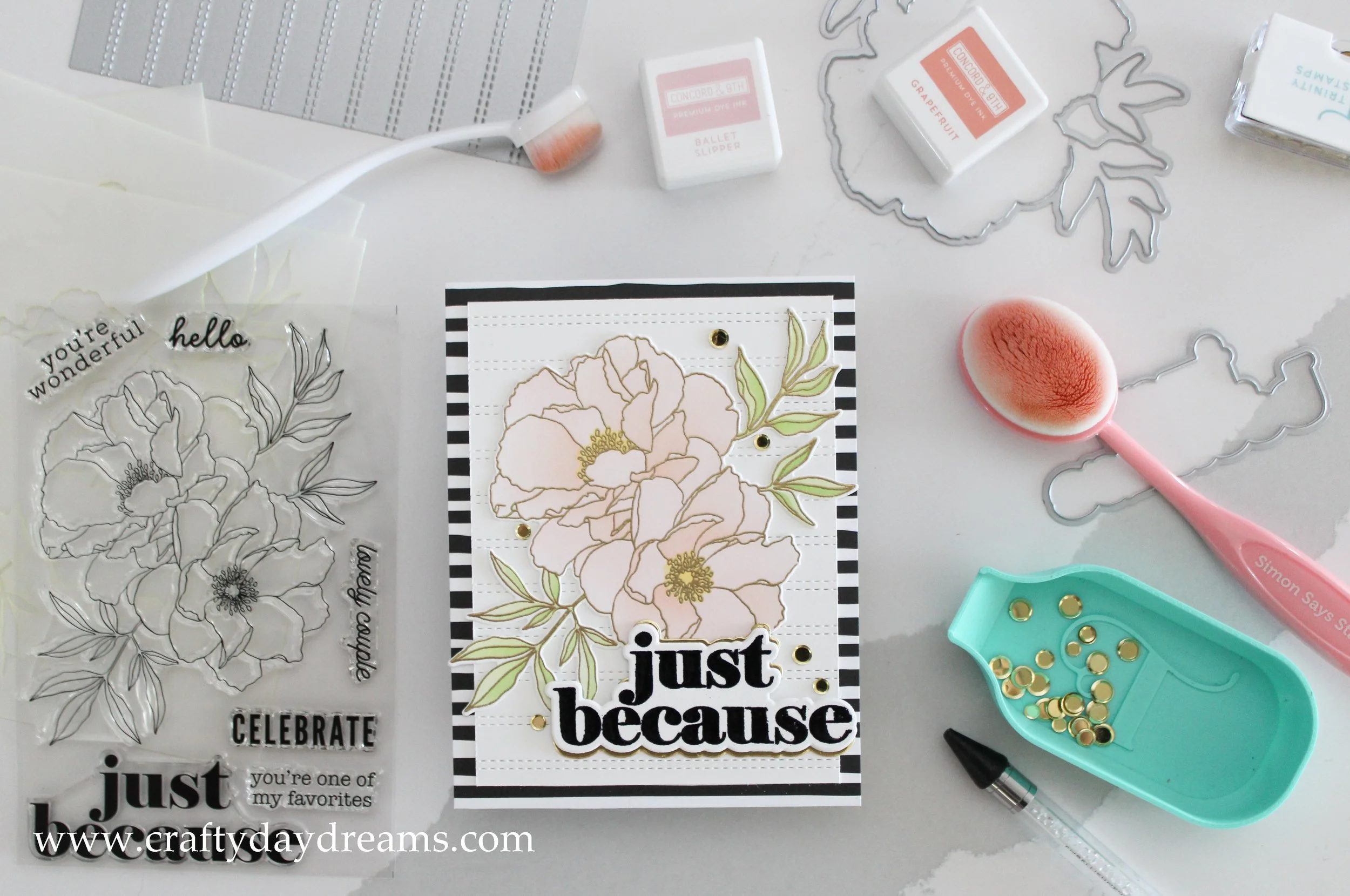 Today I’m sharing this beautiful card I made using the Blended Petals bundle from Concord & 9th. I love that there is a coordinating stencil set to this floral image, it takes all the stress out of coloring and the stencils are thick and high quality.