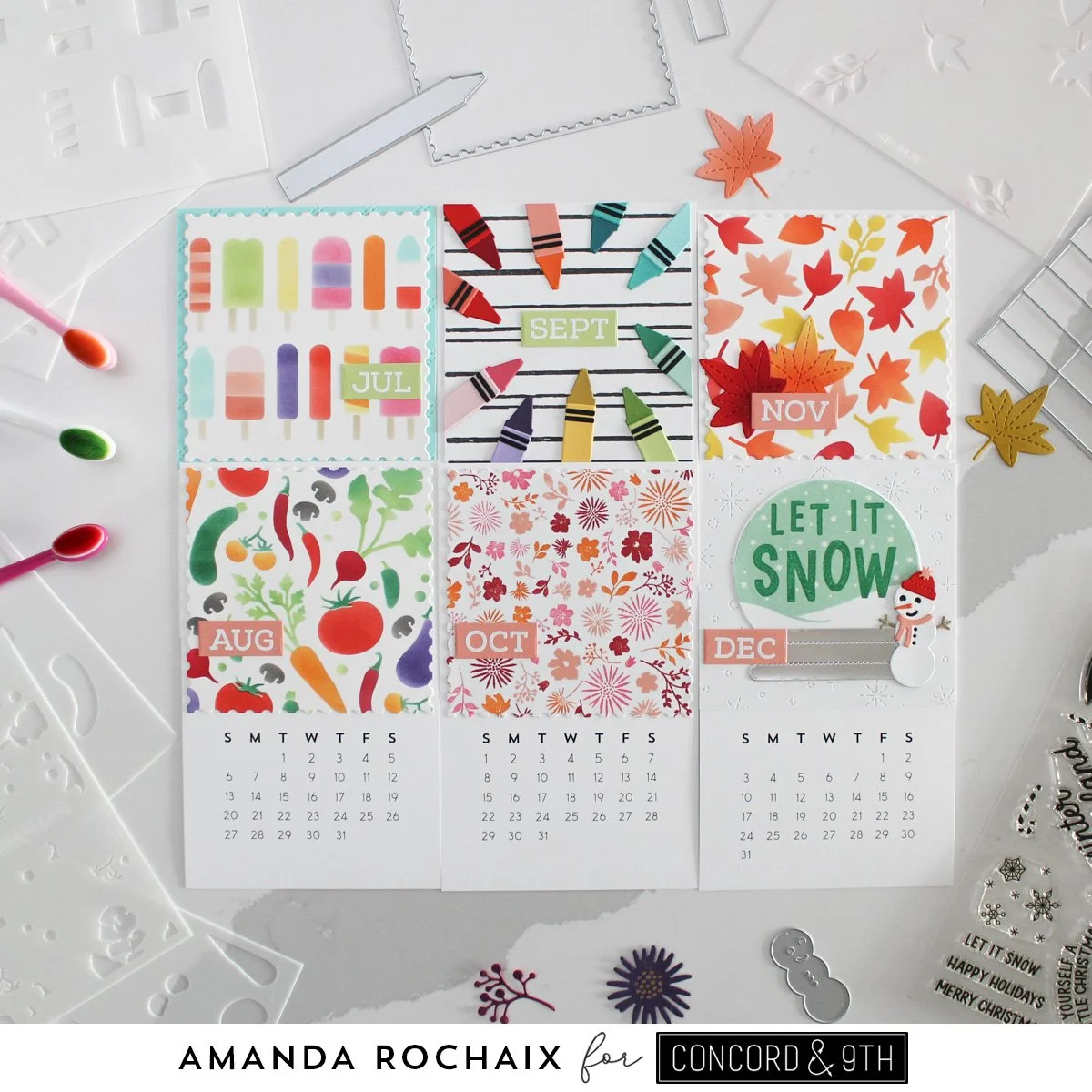 This week I’ve got more Concord & 9th goodness to share. This blog post will focus on the Mini Months bundle, the 2023 printed calendar, and the Petal Pushers bundle. I’ve never decorated a calendar before, and I had so much fun designing one this week! I definitely went a bit overboard/theme-y, but you could simply use the same Turnabout or stencil for every month and change up the colors (or not) and you would have a perfectly good calendar!