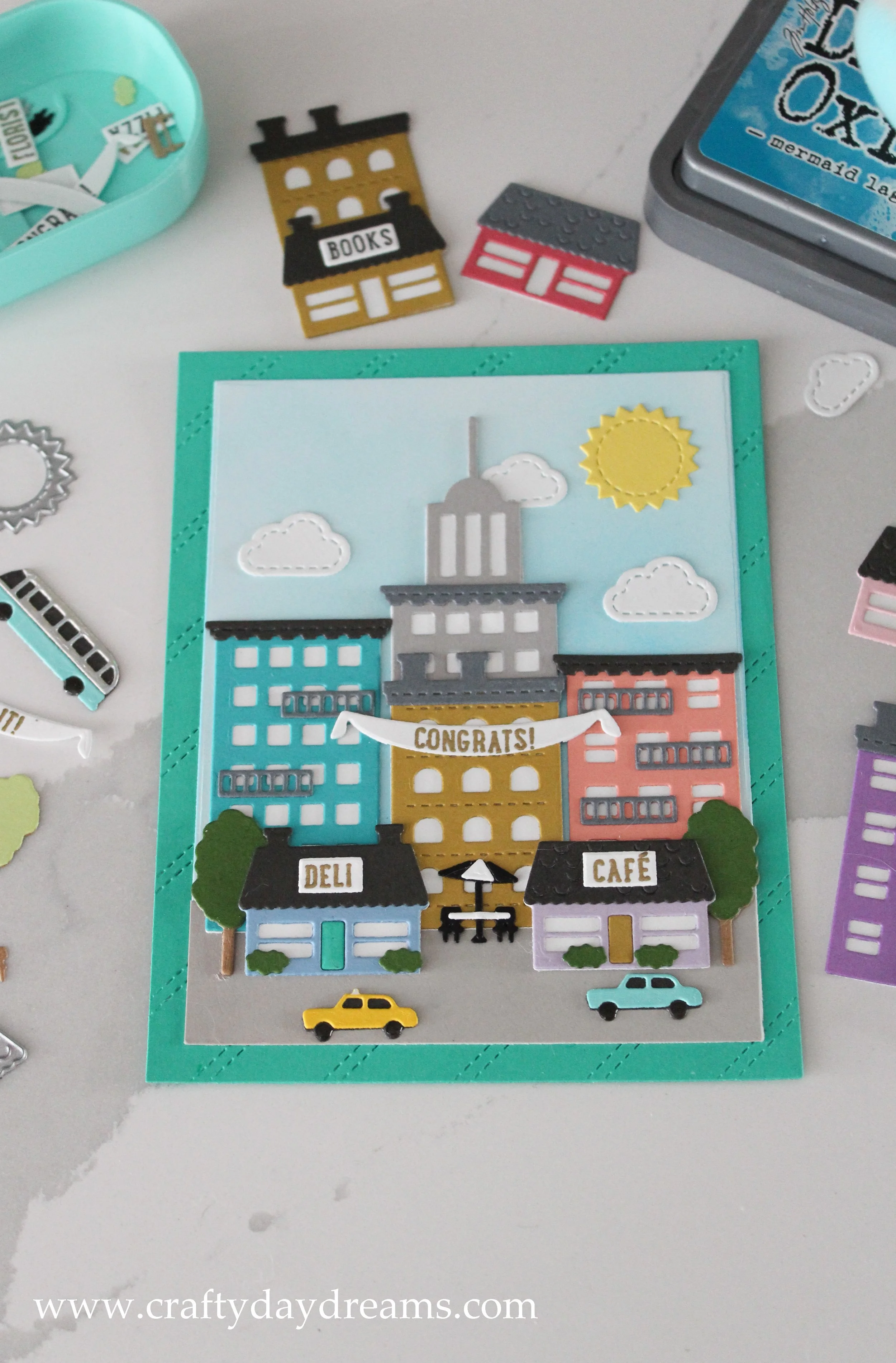 Carissa Wiley: How To Create A Cityscape Scene With Die Cuts — Sprinkled With Glitter