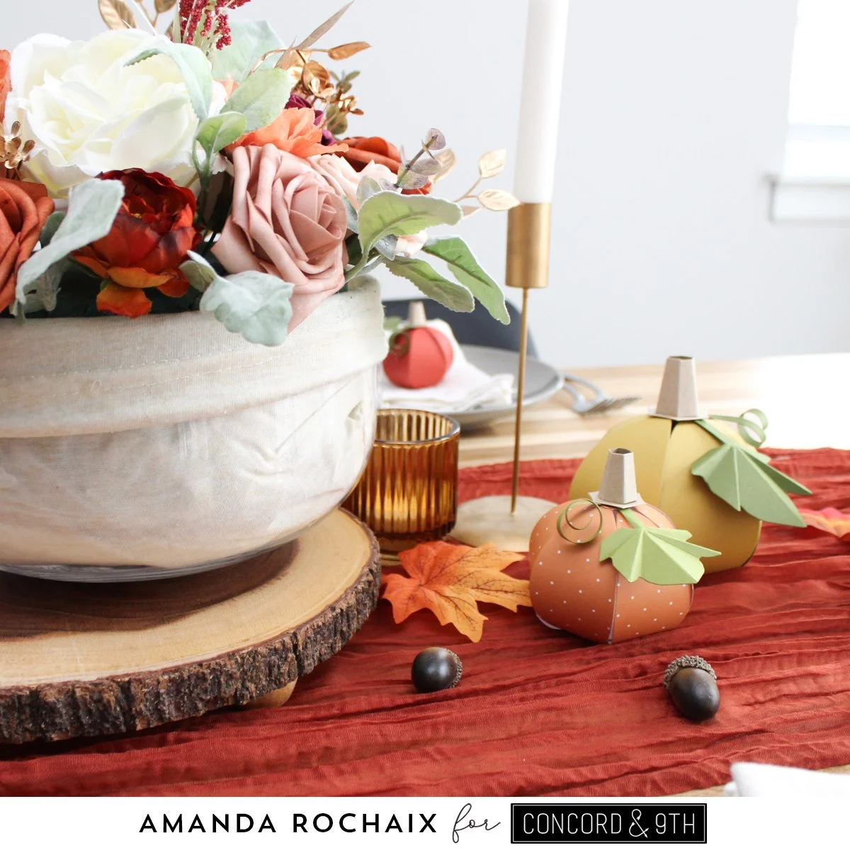 When I saw this die set, I immediately thought of using the pumpkins as mantle/table decor and as place cards for Friendsgiving/Thanksgiving.