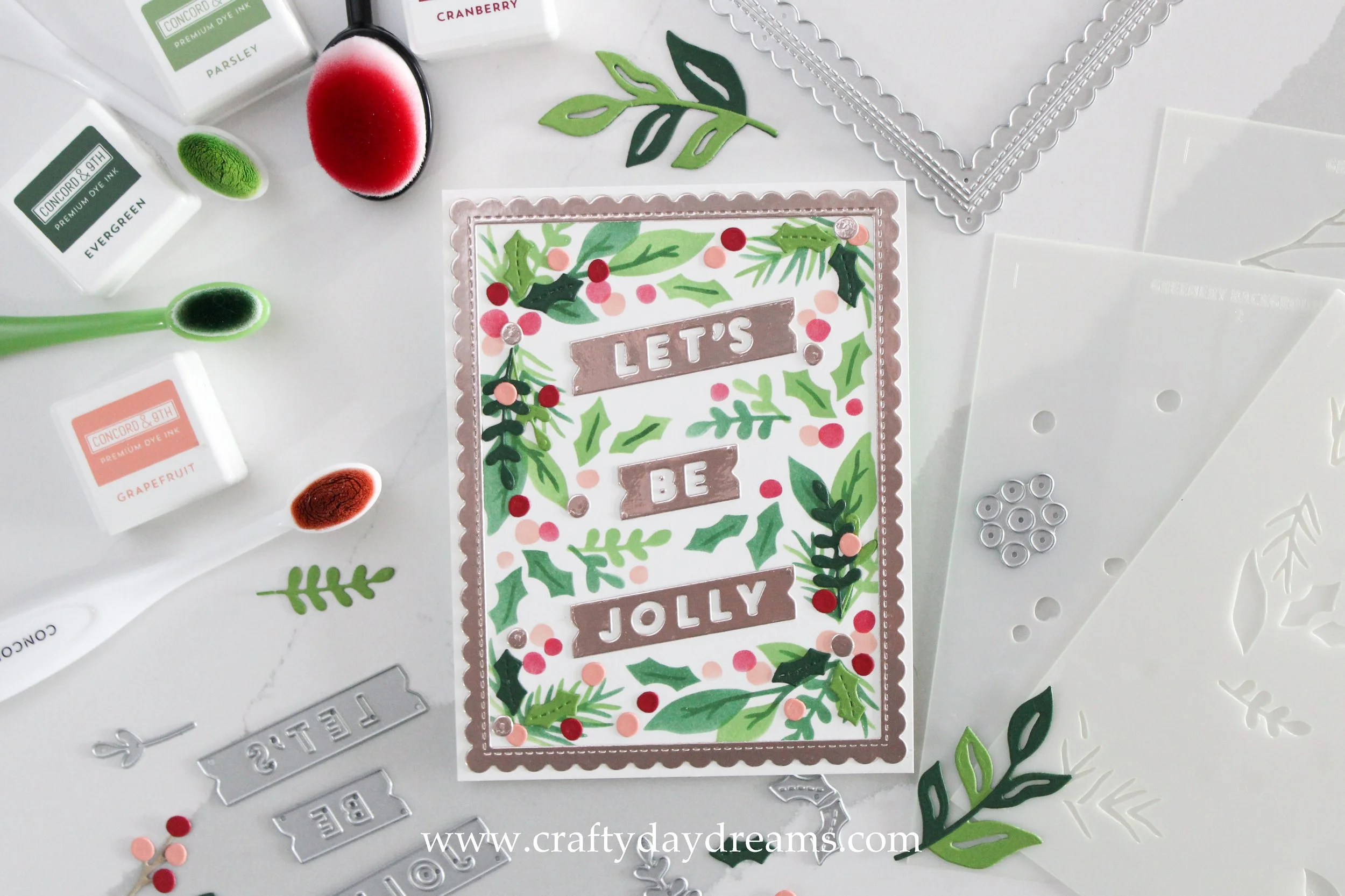 Today I’m sharing another quick and easy Christmas card featuring the other half of the Boughs & Holly Stencil Pack from Concord & 9th’s September 2022 release. I love this stencil pack, and the stencils I used today might be my favorite. I love the organic feel to the greenery as it twists and turns and leaves space for your greeting, it’s a really well-designed product.