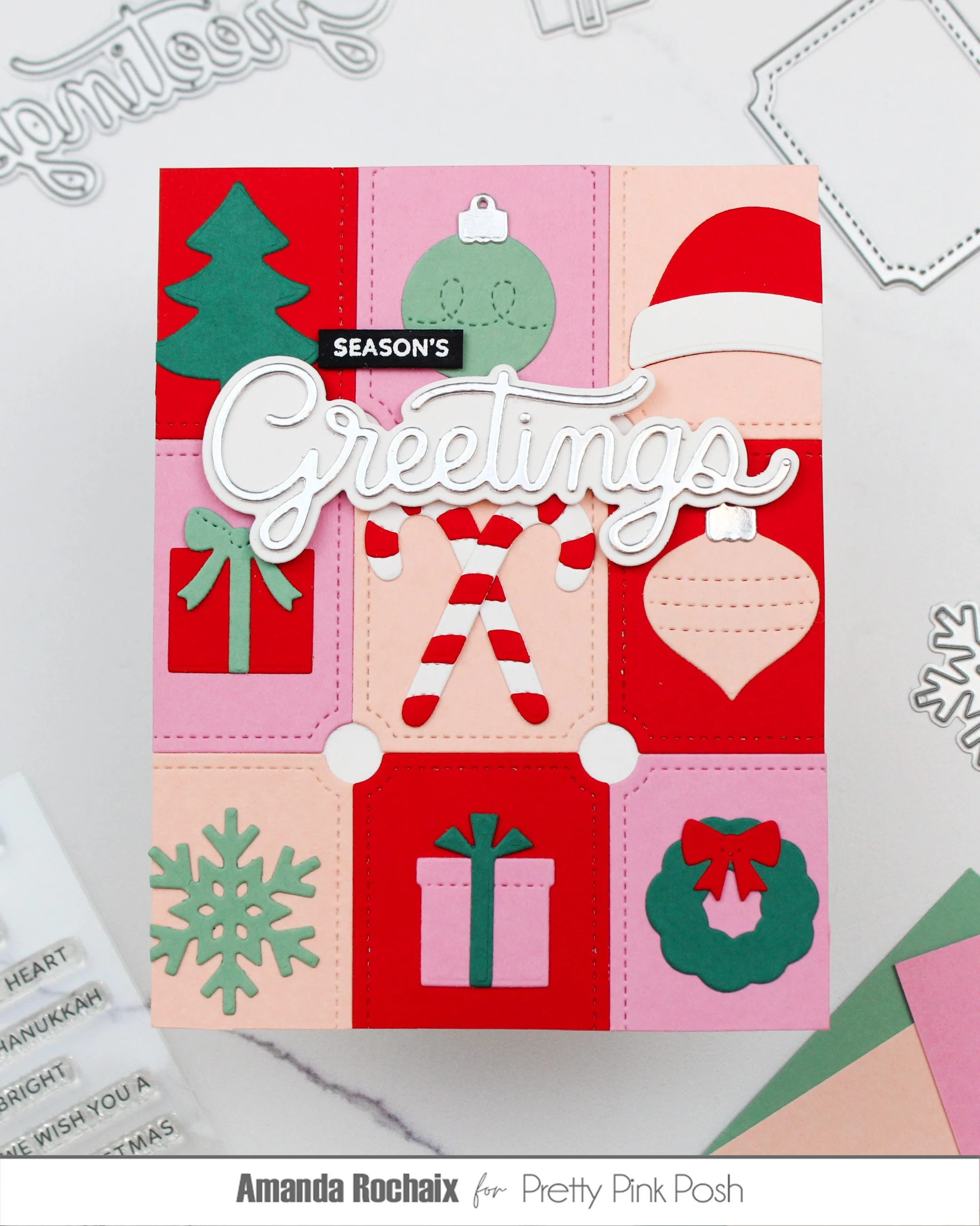 Hi, crafters! Long time, no see 😅. Pretty Pink Posh asked me back to guest design with their November release, and I had sooooo much fun! (I hope to be sharing more of those cards on here soon). I think this card is my favorite project that I made with the release because it’s so colorful, pop art-y, and fun. It is a little bit die cut heavy, but if you die cut all these elements in multiple colors, then you could have a pretty fun mass production party on your hands.